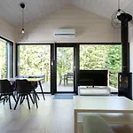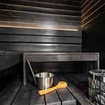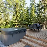 Himoskuutio 10, Erillistalo, Ulkoporeallas includes storage and a patio featuring a stone fireplace and sound-proofed windows, and modern facilities like Wi-Fi and a TV. A spa bathtub, a separate toilet, and a shower are also provided. Furthermore, you can enjoy hairdryers provided in the bathroom.